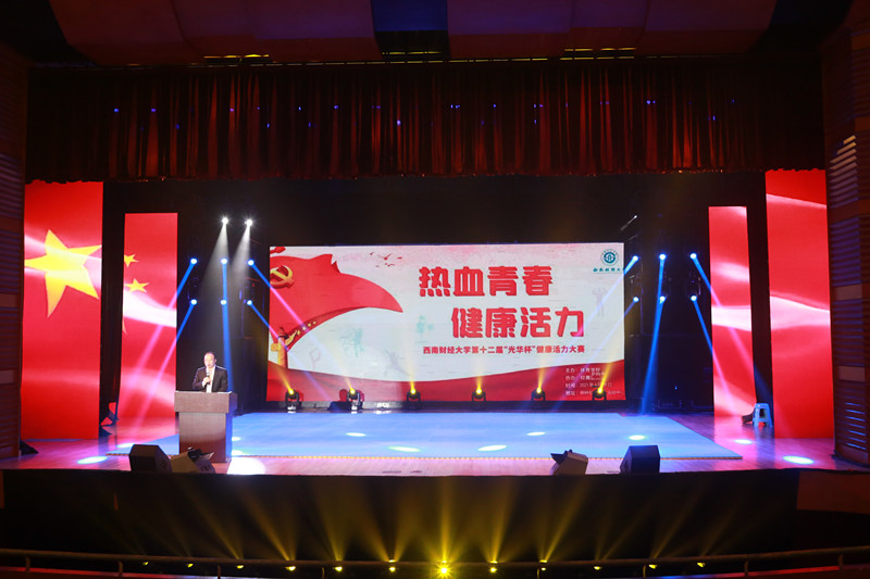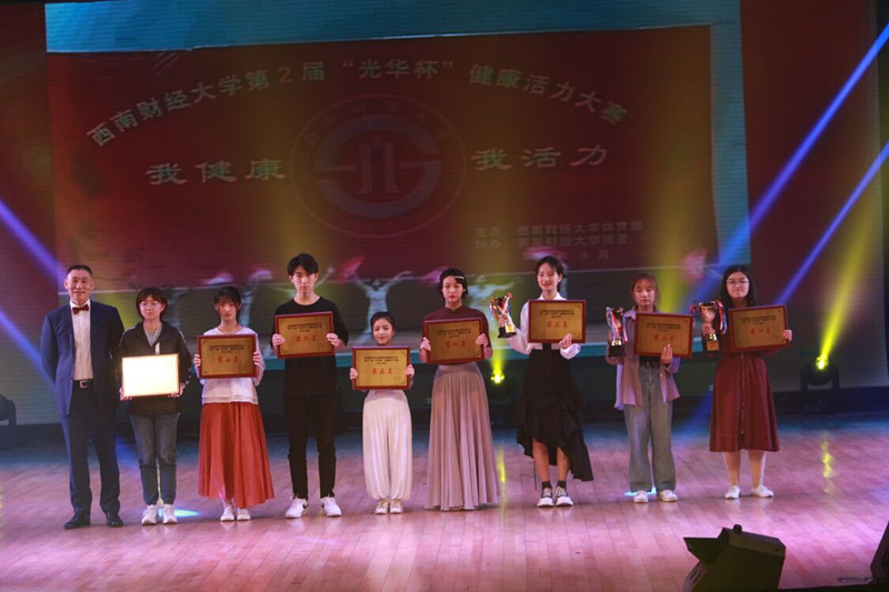 4月29日晚,学校第十二届“光华杯”健康活力大赛汇报演出暨颁奖晚会在学生活动中心800人厅隆重举行。党委副书记曾道荣,党委常委、副校长李永强,相关职能部门和学院(中心)负责人,乐投网站全体教职工、获奖同学代表等参加晚会。