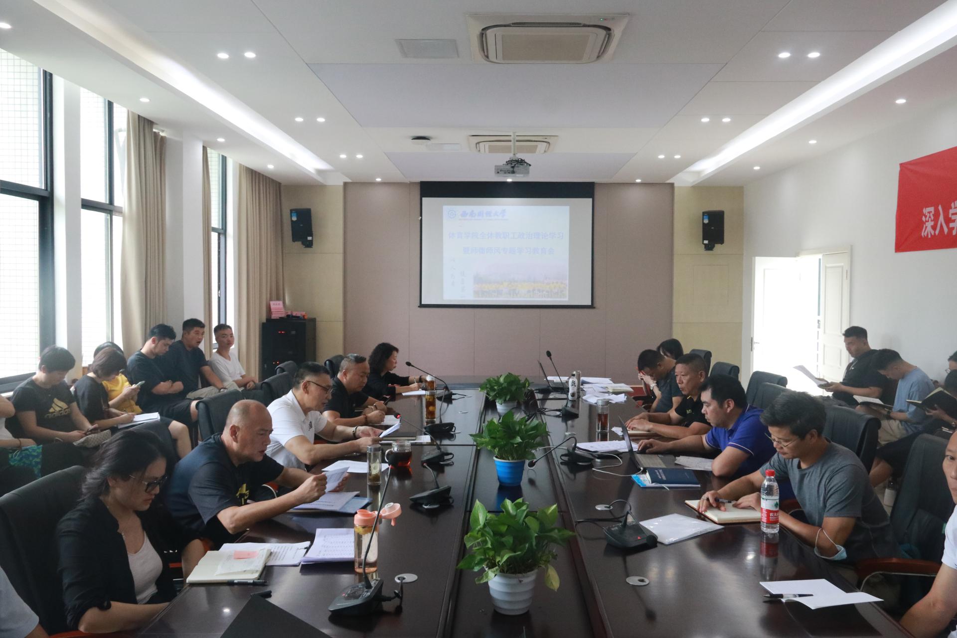 9月7日,乐投网站在游泳池201会议室召开全体教职工政治理论学习会,开展师德师风专题学习,学院全体教职工参加,会议由杨远波院长主持。