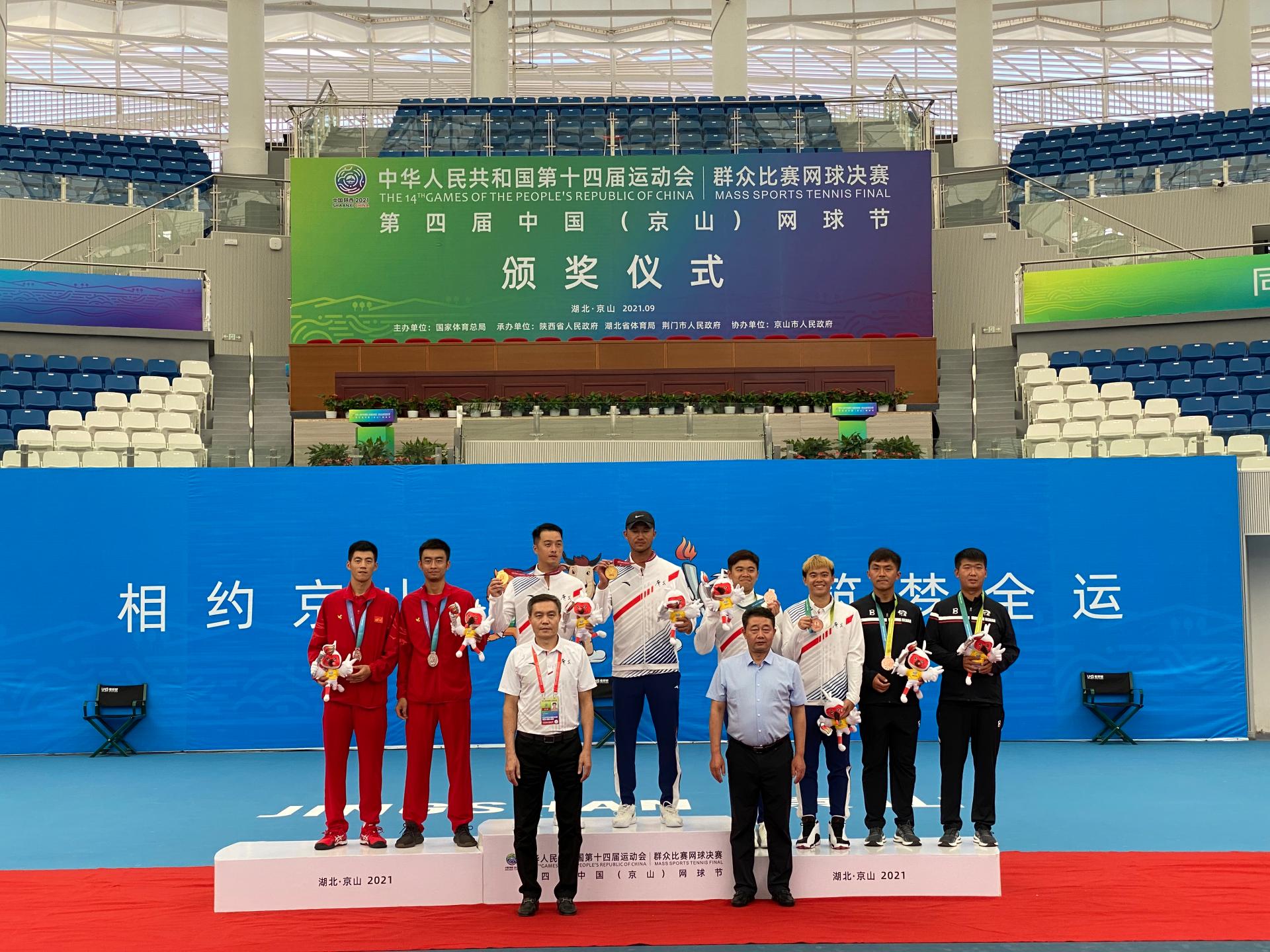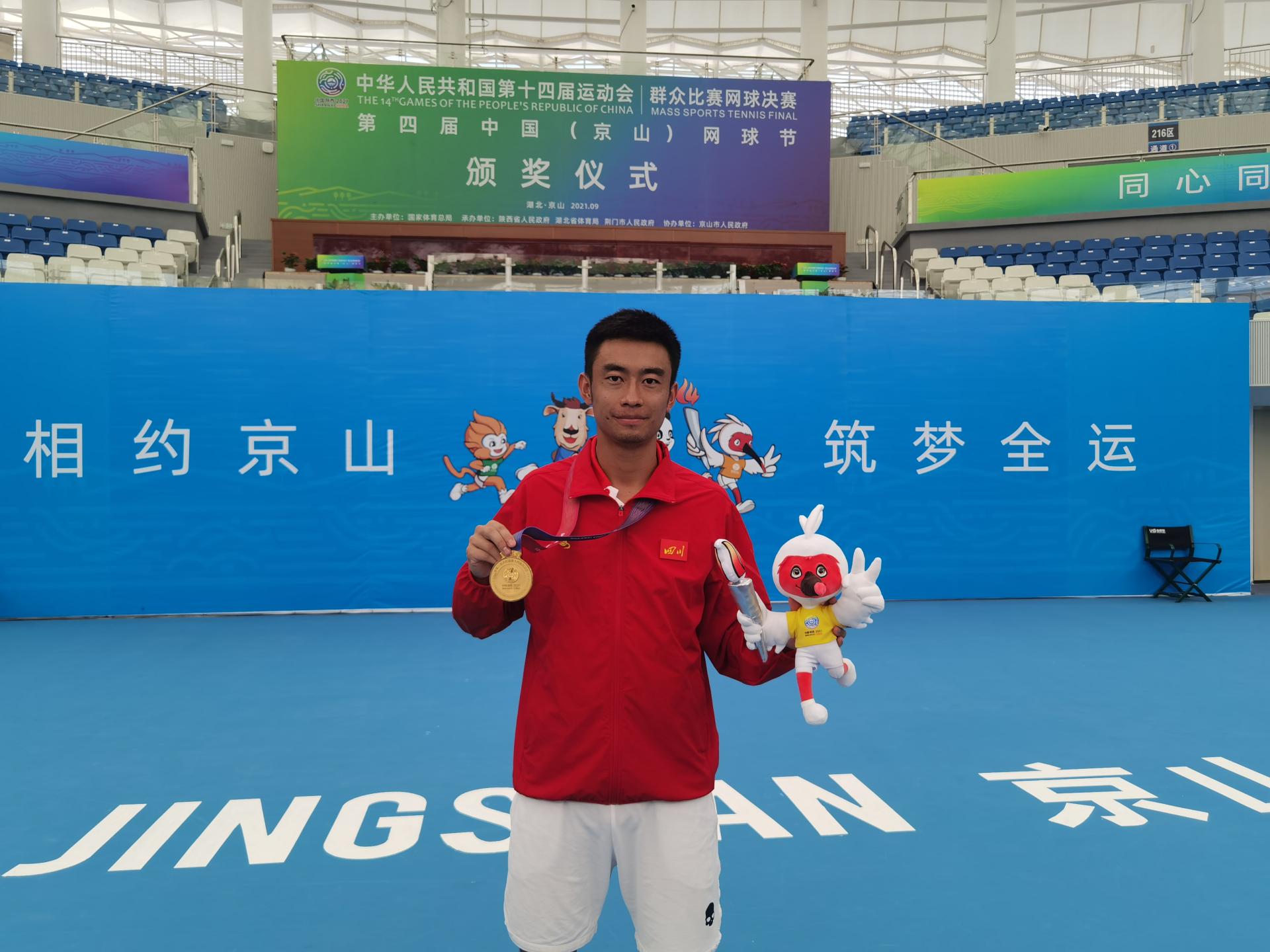 本届全运会根据习近平总书记“人民至上、全民全运”指示精神,首次设立群众体育比赛网球竞赛项目。来自全国 25个省区市和 1个行业体协共26支代表队,近500名运动员、教练员、技术官员参加了比赛。在男子团体决赛中,乐动(中国)教师施泓宇代表四川队出战,施泓宇充分发扬奥林匹克精神和中华体育精神,顶住压力顽强拼搏,发挥出高超的竞技水平,最终四川队以 2: 1 击败广东队,拿到在本届全运会群众项目网球比赛的第一块金牌。在随后进行的男子双打及男子单打比赛中,施泓宇过关斩将,连续五日作战,历经五场单打、四场双打对决,相继获得男子双打银牌及男子单打第五名。