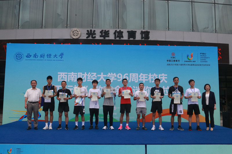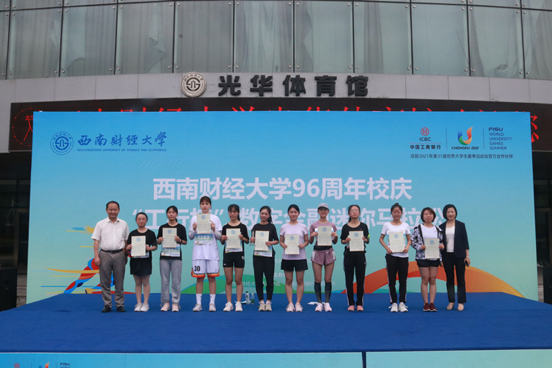 上午10点10分,杨远波、王刚分别为迷你马拉松赛男女参赛选手鸣枪,运动员从体育馆正门出发,经学生活动中心、通博楼、格致楼方向的创业大道跑两圈,再回到体育馆正门,全长4.21公里。途中设置了3个应急救援点,全程保障师生的健康安全。赛道上的师生宛如一道从黄浦江畔飞跃浣花溪旁点亮柳林华章的历史之光,照耀着西南财大96载弦歌不辍、兴学报国的光辉奋斗历程。活动最后,张邦富副校长和何晓涛行长为迷你马拉松男女前十名颁发了奖状及奖品。整个活动在欢快祥和的气氛中圆满落幕。