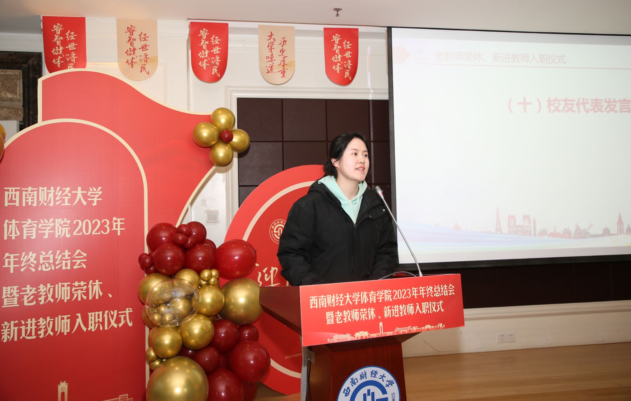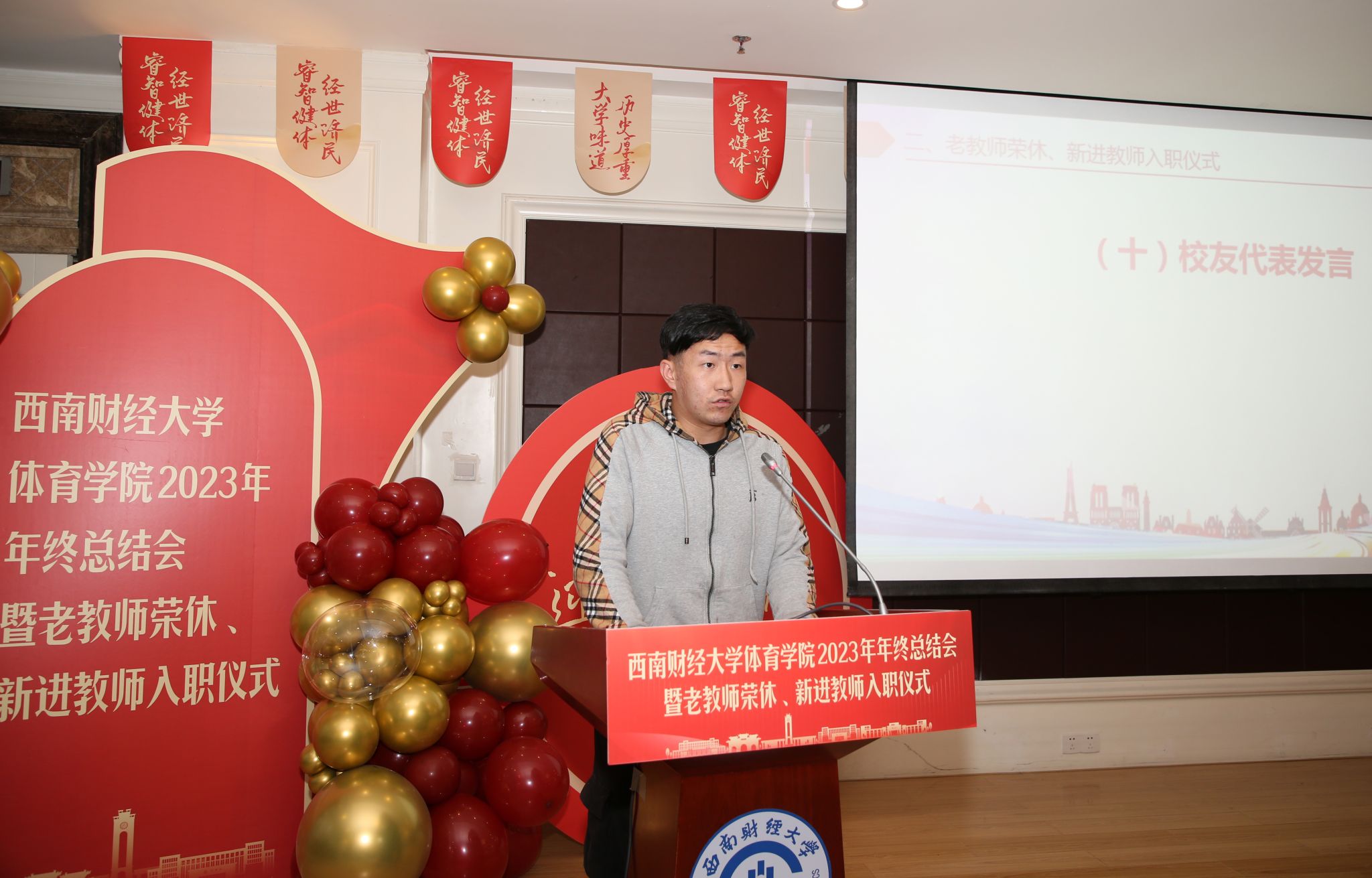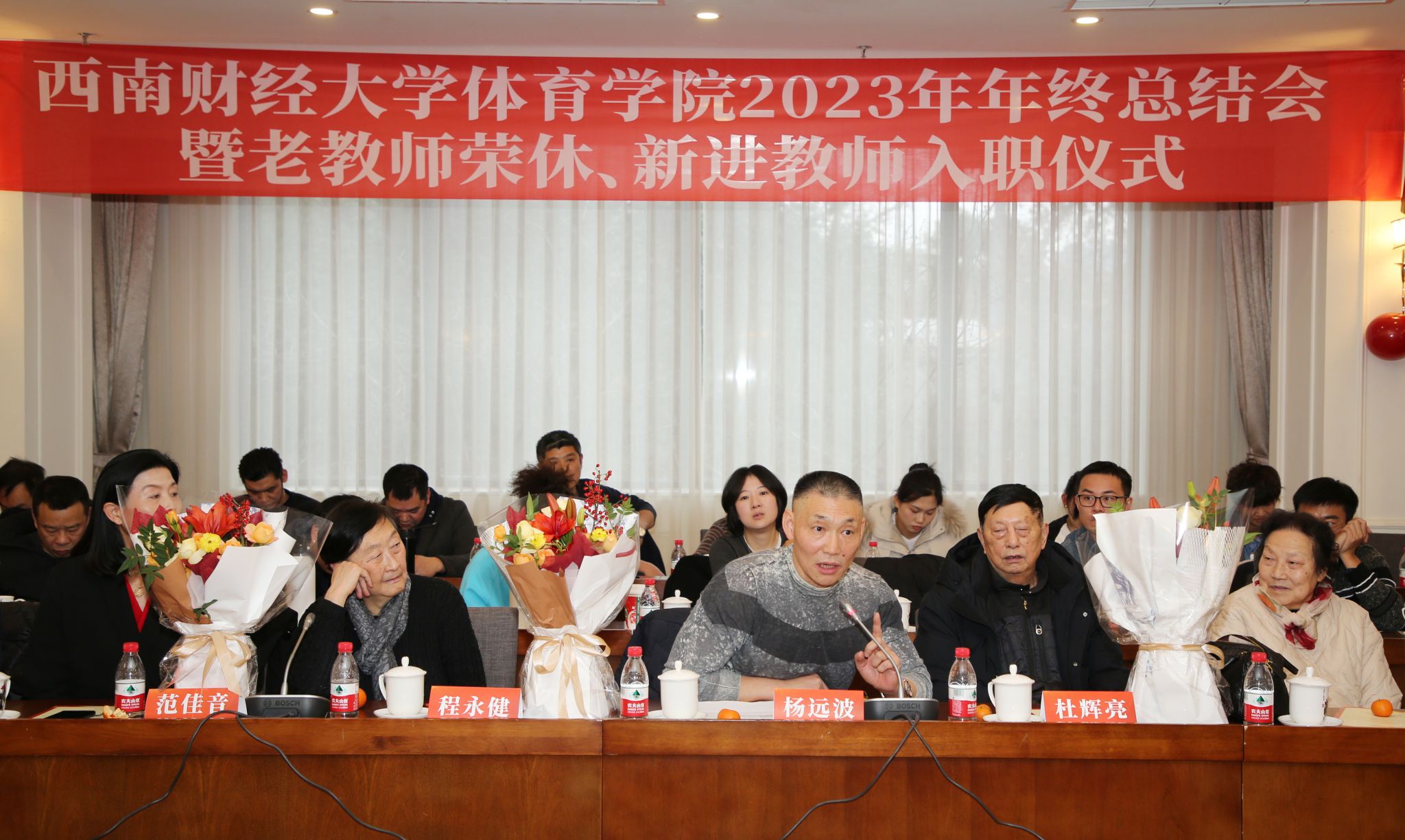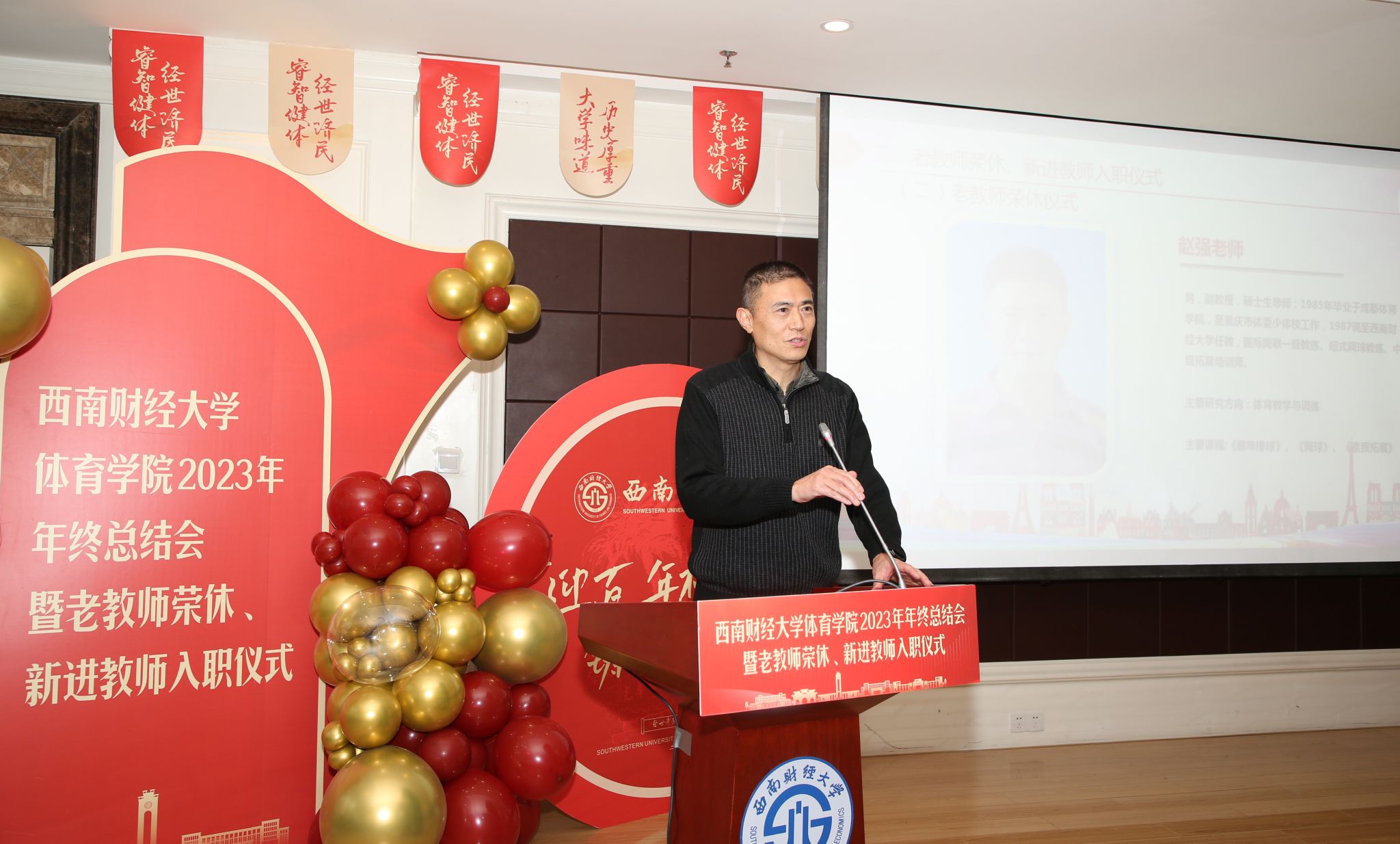 杨远波代表学院向荣休的张堰玲、赵强两位教师表示衷心的感谢并致以良好的祝愿,向新入职的青年教师表示热烈的欢迎。他指出,老教师荣休、新教师入职仪式作为学院师德师风建设的一项重要内容,目的是赓续百年初心,担当育人使命,让红色血脉生生不息、让“睿智健体、经世济民”的西财体育人文精神代代相传。张堰玲、赵强见证了乐投网站的发展,他们四十年如一日与学院同荣辱、共成长,默默奉献、朴实无华、不求名利,为学院和学校的发展付出了毕生心血、作出了重要贡献。希望老教师们保重身体,一如既往支持学院发展。同时,他对新入职的教师提出希望:坚持“四个相统一”,将立德树人贯穿教书育人全方位全过程,争做“四有好老师”和新时代“大先生”,牢记为党育人、为国育才使命,为培养德智体美劳全面发展的社会主义建设者和接班人作出新的更大贡献。当前,正值全校上下喜迎百年校庆之际,从黄浦、光华、柳林的薪火相传中,汲取西财体育发展的力量,做好冲刺之年学院迎百年校庆的相关筹备工作,是每一位西财体育人光荣的使命和责任,我们一定要凝心聚力、同心筑梦,为学校百年华诞绘就丰富多彩的体育画卷。