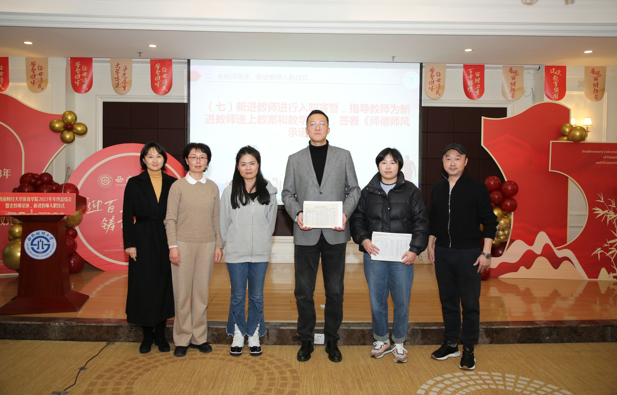 1月19日,乐投网站老教师荣休、新教师入职仪式在光华校区住友苑2楼会议室隆重举行。学院老领导杜辉亮、程永健、范佳音,离退休教师代表,荣休教师张堰玲、赵强,新入职教师,院长杨远波、党委书记周正宏、副院长阴涛、陈丛刊,党委副书记、纪委书记李治以及院长助理、学院各部门负责人、全体教职工、校友代表参加仪式。