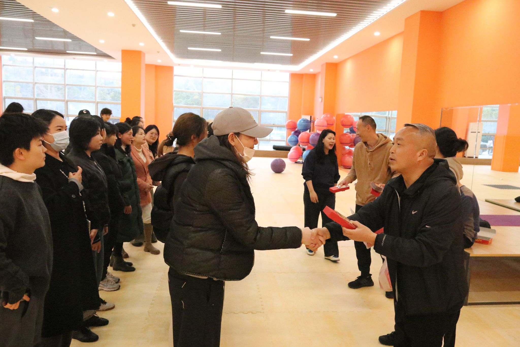 第二个项目是“踢毽子”,寓意着——实干担当传承百年西财精神。女教职工们围成两个圆圈“踢着毽子、传着精神”。院领导主动加入其中,不仅体现着学院对女教职工们的关心关爱,也传递着“强国建设 西财担当 西财体育担当”的精神。